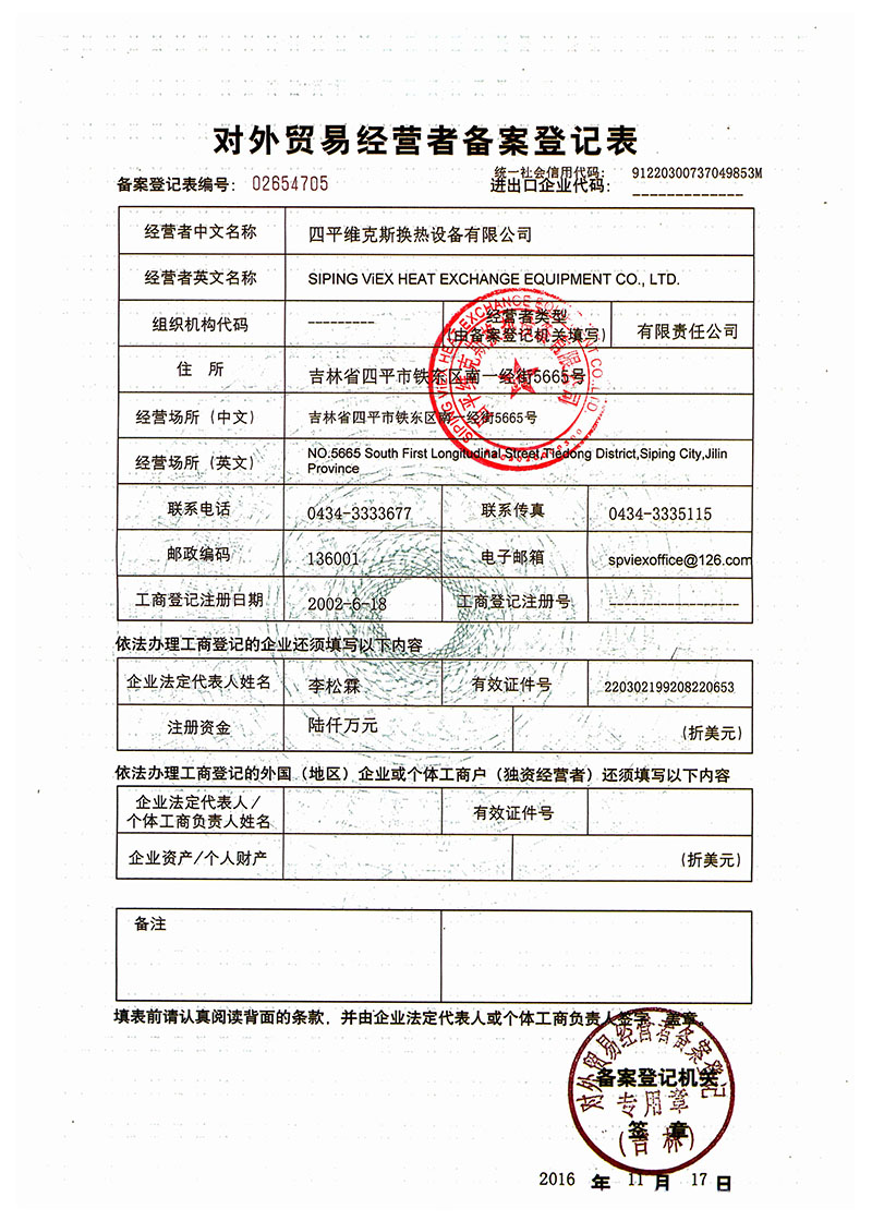 Member Unit Certificate of the Heat Exchanger Safety and Energy Efficiency Profe