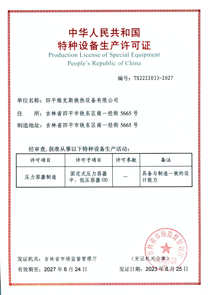 Special equipment production license